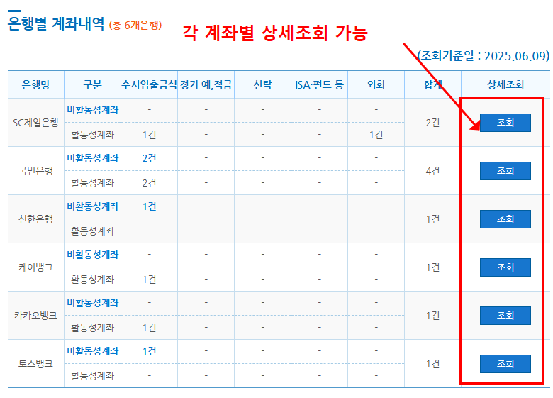 1금융권, 저축은행, 증권사별로 조회가 가능 합니다.