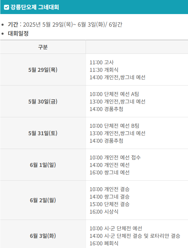 - 특이사항: 5월 29일(목)은 영신행차로 인해 17시까지 운영