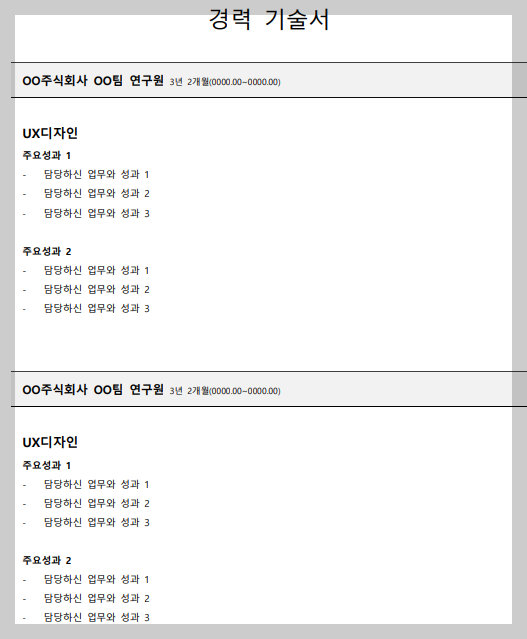 📄 경력기술서 기본 양식