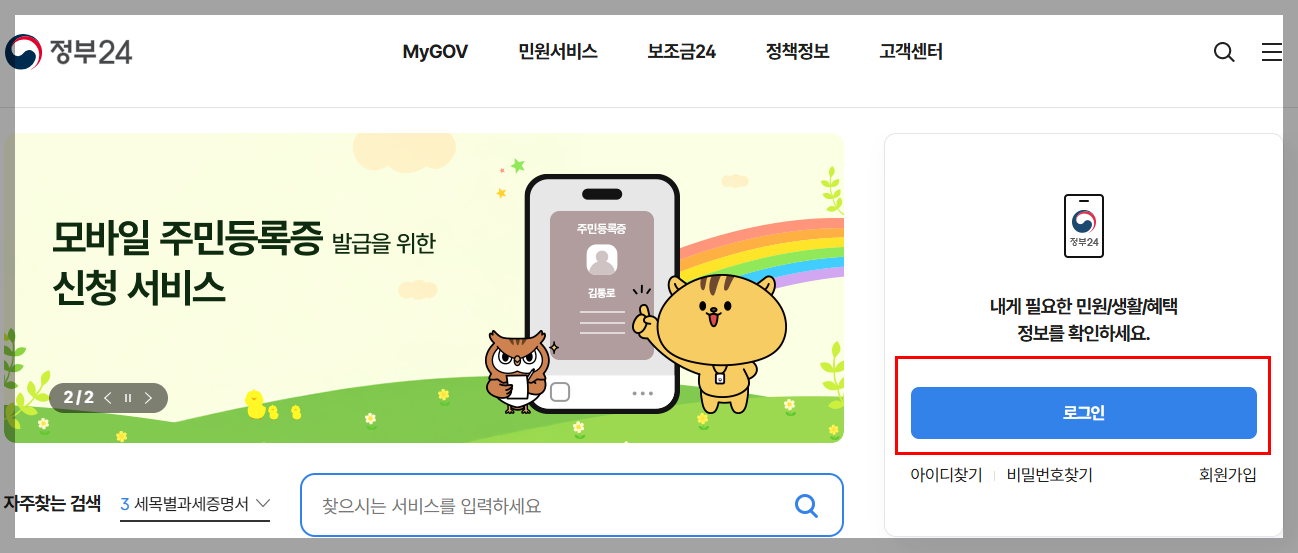 - 모바일 발급 가능 (정부24 앱 사용)