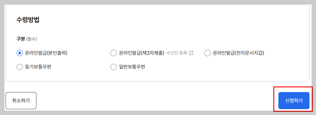 | 인터넷 (정부24) | 무료 | PDF 저장 및 인쇄 가능 |