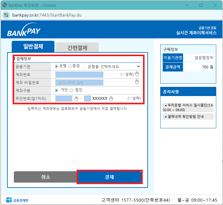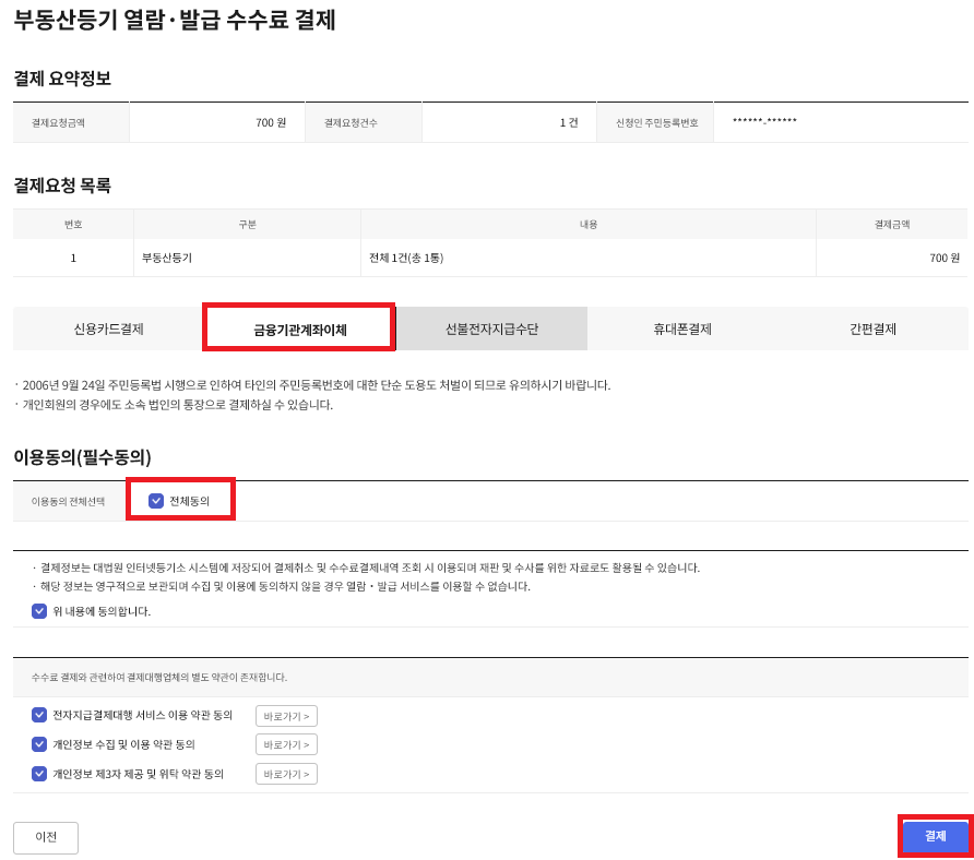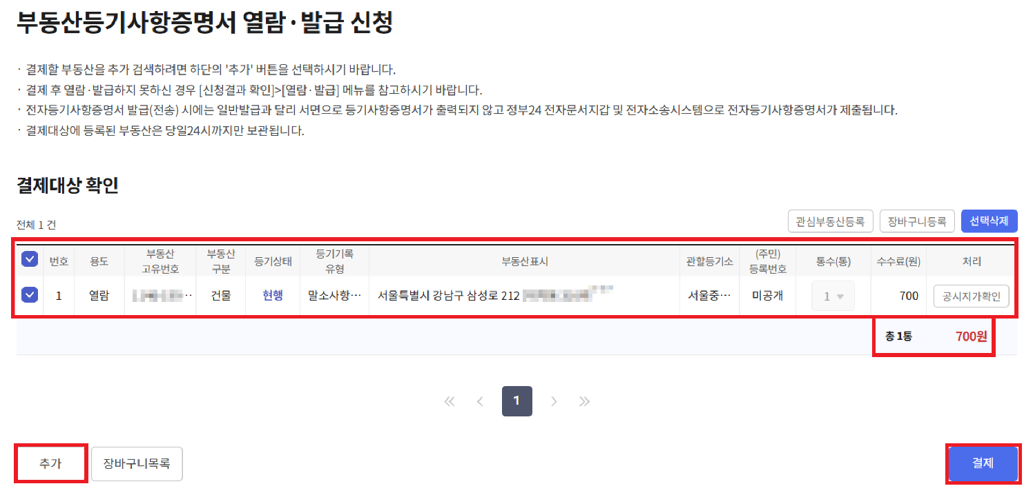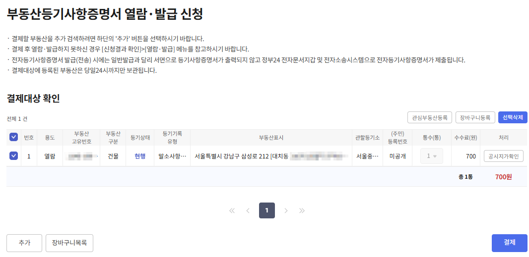 - 수수료 결제 – 열람 700원, 발급 1,000원