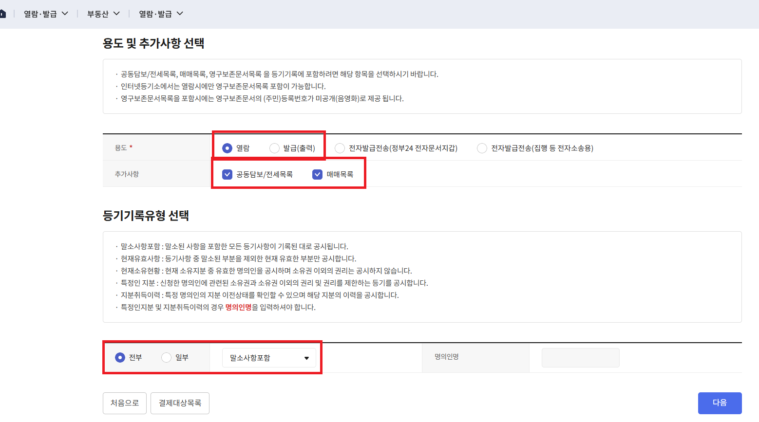 - 열람 또는 발급 선택 – 원하는 서비스 선택