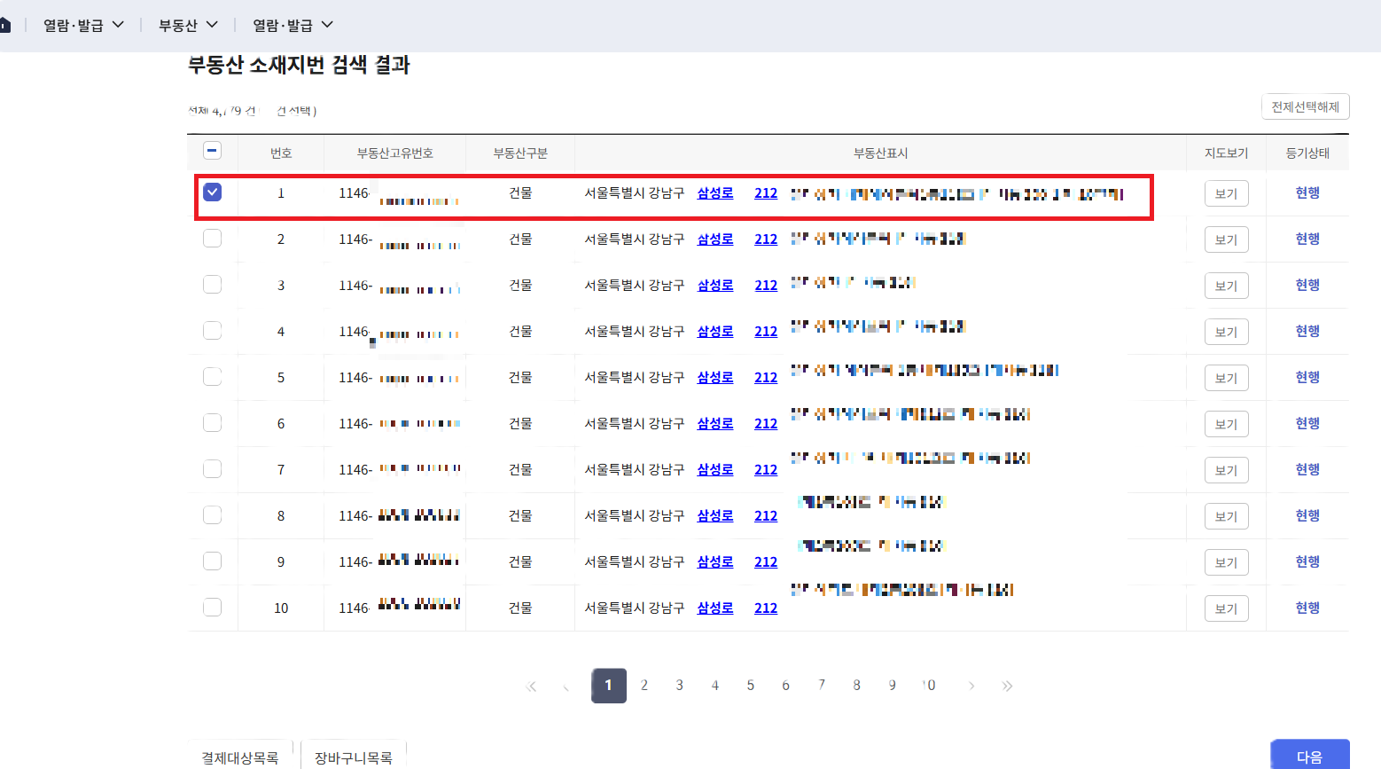 - 부동산 검색 – 지번주소, 도로명주소, 건물명 등으로 검색 가능