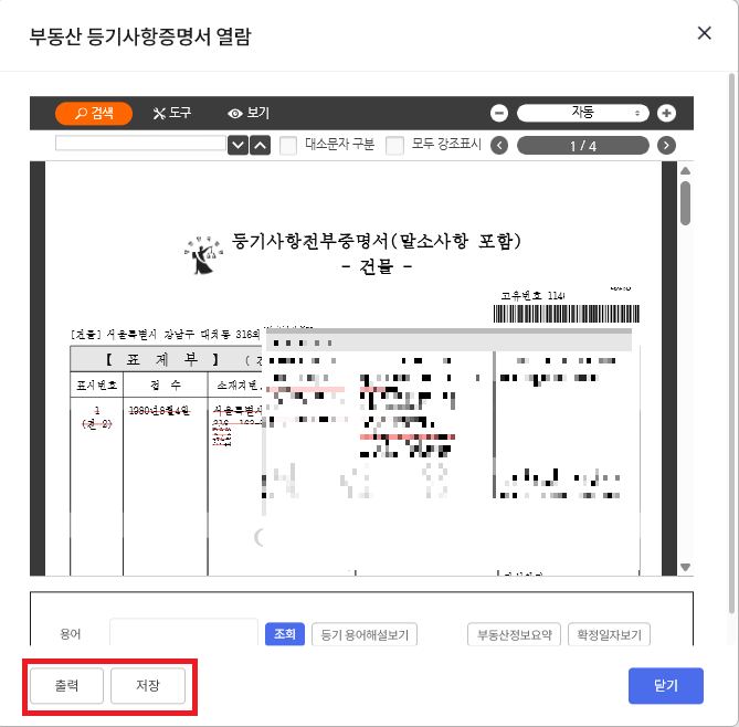 - 열람/발급 완료 – PDF 저장 또는 화면 확인/출력