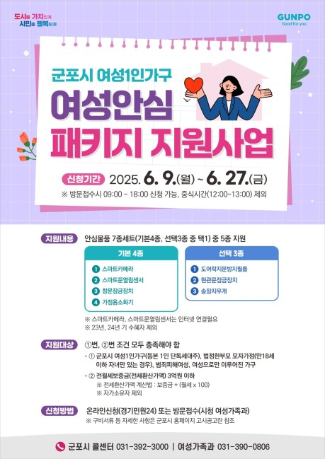 안양시, 군포시, 수원시, 화성시 주민이라면, 지금 바로 신청하세요! 혼자 사는 여성에게 있어 안전은 선택이 아닌 권리입니다.